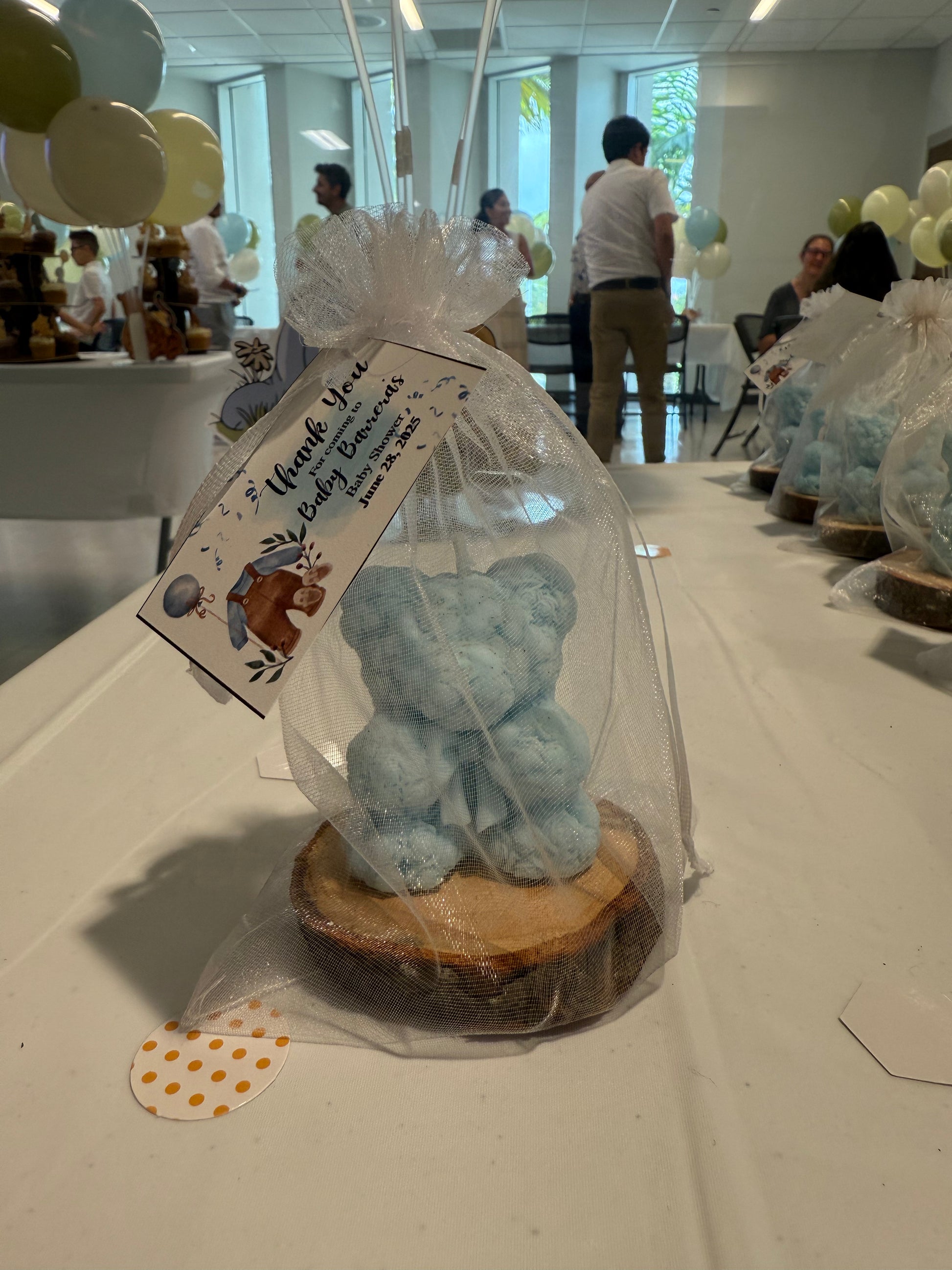Dulce, tierna y 100% hecha a mano, nuestra vela en forma de osito es el detalle perfecto para decorar o regalar en un baby shower. Su diseño encantador y aroma suave la hacen especial para celebrar la llegada de un nuevo bebé.